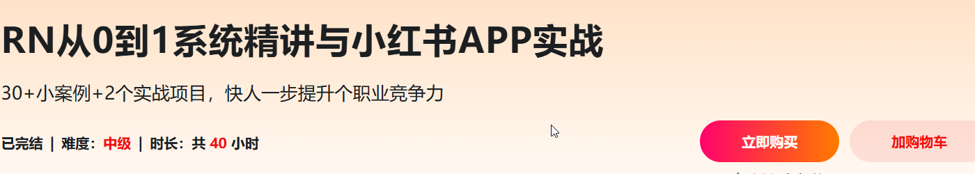 无论你是移动端OR前端开发者,至少要掌握一门 跨平台技术,这是移动端和前端发展的必然趋势,企业更青睐有跨平台技术的人才。课程浓缩老师多年跨平台实战经验,通过30+小案例和账号密码本APP,带你从入门到进阶,体系化提升RN跨平台技术应用能力,最后再带你高仿一个真实的企业APP(小红书),让你具备企业级APP的跨平台落地能力。