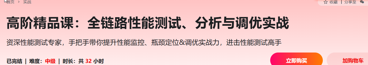 如果你正苦恼于个人成长瓶颈难以突破,职业上升通道严重受阻,很难产生质的变化,那是因为你困在了单点局限中,只要你能掌握全链路性能测试及分析调优能力,就能迅速打开视野,拓展职业新高度。本课程将带你深入全链路性能测试的每一个环节,从构建强大的性能监控体系,到精准采集和分析性能数据,再到高效调优系统性能,全方位提升你的定制化性能测试解决方案设计&执行、性能数据分析、瓶颈定位、资源调优的实战力。如果你想更快,更高效改变现状,那这门课就是你的不二之选。