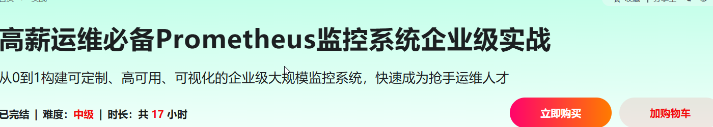 不论是运维还是运维开发,不能深入掌握大型复杂监控系统,职业之路只会越来越窄。为此,慕课网特邀一线运维大牛手把手带你从零搭建一套高可用、可定制、可二次开发的企业级大规模监控系统。课程基于最主流的Prometheus,从系统、应用、业务监控到高级的Kubernetes集群监控,带你系统,深入,全面的提升大型复杂监控系统实战经验,为你的职业发展与晋升保驾护航