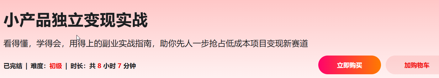 想尝试副业,又担心投入高、耗时高、风险大?别担心,本课程专为想低成本,低门槛,探索高回报副业者设计。无论你是初探副业还是转型谋生,跟随资深独立开发者凯凯刘老师,都可以掌握从创意落地到产品推广全链路变现套路;收获基于自研框架+AI技术,从0到1全流程落地3款副业项目实战经验。快来加入我们吧!