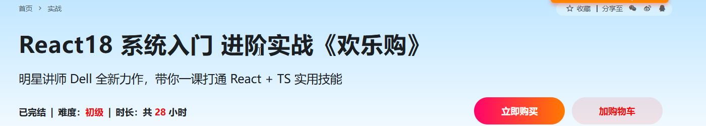 前端技术专家 Dell 老师带你系统构建 React18 技术体系,并结合“欢乐购”项目,快速积累企业级前端项目实战经验,落地 React18 与 TypeScript 结合的实用开发技巧。同时老师分享了React框架核心源码实现原理的深度思考,进一步帮助大家 “学懂用活”,真正走近框架,全面提升技术实力。体验地址:http://statics.dell-lee.com/shopping-project/index.html