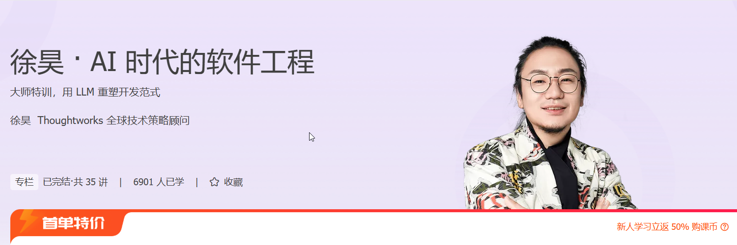 在 AI 技术迅猛发展的今天,软件工程正经历从“代码为中心”向“知识为中心”的深刻变革。本课程《徐昊 · AI 时代的软件工程》紧扣后端与架构领域核心痛点,系统讲解大语言模型(LLM)如何重塑软件开发流程,从知识获取、业务建模到测试驱动开发,构建高效、可落地的 AI 协同开发模式。你将深入掌握 LLM 在架构设计、需求建模、自动化测试中的实战技巧,学习如何通过思维链(CoT)、TQA 等交互模式提升开发效率与质量。课程结合 Spring Boot、TDD、结对编程等真实场景,帮助你在实际项目中快速应用 AI 工具。无论你是希望提升技术深度的后端工程师,还是寻求架构升级的团队负责人,这门课都将助你掌握 AI 时代的核心竞争力,实现从“编码者”向“知识工程师”的跃迁。
