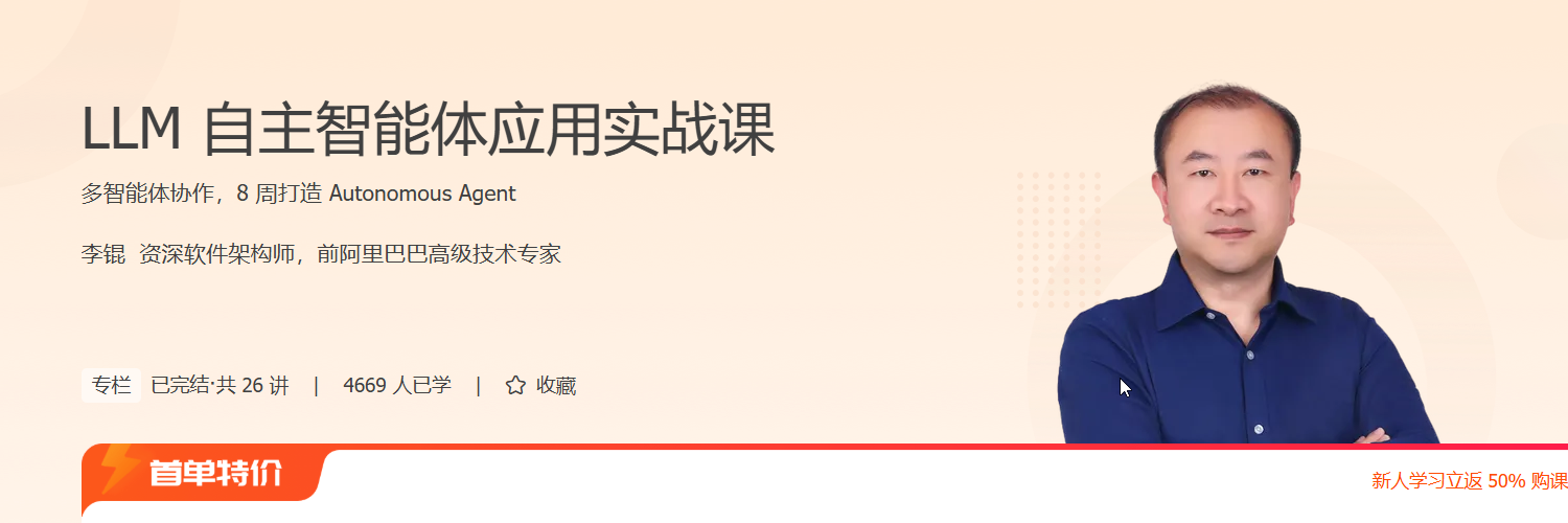 在 AI 与业务深度融合的时代,后端开发正迈向智能化新高度。本课程《LLM 自主智能体应用实战课》由资深架构师李锟倾力打造,聚焦 Autonomous Agent 核心技术,助你掌握 LLM 驱动的业务流程自动化能力,成为智能系统架构设计的先行者。
