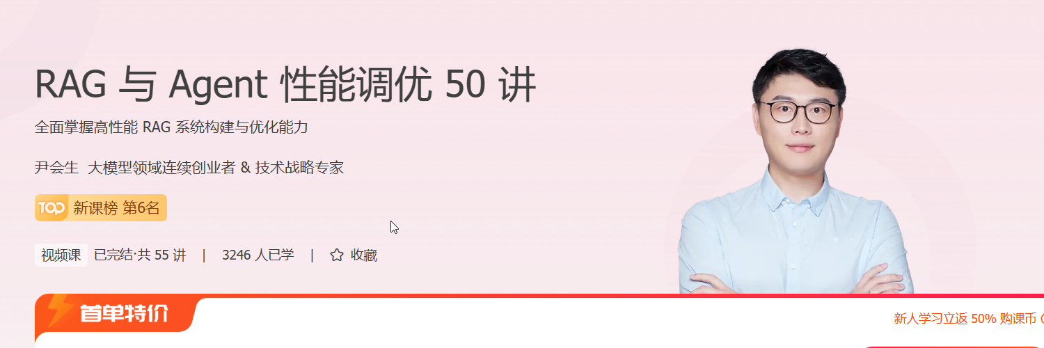 在人工智能领域,构建高性能的 RAG 与 Agent 系统已成为推动智能应用落地的核心能力。本课程《RAG 与 Agent 性能调优 50 讲》系统讲解从数据预处理、检索优化到生成控制的全流程关键技术,助你打造高精度、高效率的智能问答、客服机器人、法律与医疗辅助系统。