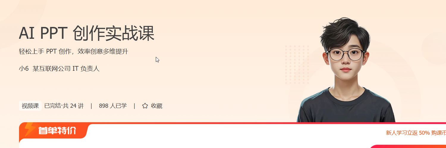 本课程从 AI 与 PPT 设计基础,到 AI 在 PPT 制作中的应用、高级 AI PPT 设计创意技巧,理论与案例相结合,通过多款 AI 工具实战,帮你一步步深入理解 AI PPT 的应用,手把手教你用 AI 设计更加美观的 PPT。即使零基础的小伙伴,通过学习这门课程,也能快速上手 AI PPT,让你的 PPT 高效、高质。