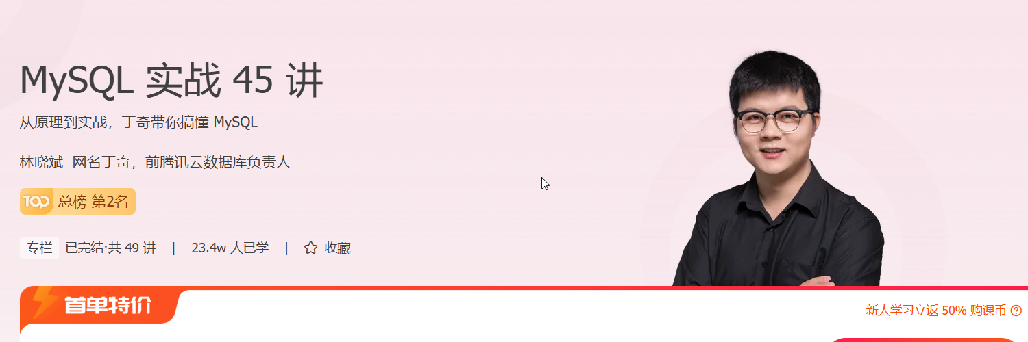 在后端开发与系统架构中,MySQL 作为核心数据库组件,其性能、稳定性和扩展能力直接影响系统整体表现。《MySQL 实战 45 讲》从底层原理到高阶实战,系统讲解事务、索引、锁机制、高可用、主从复制等关键技术,帮助你构建扎实的数据库能力体系。课程通过 36 个真实案例与 100+ 图解,深入剖析如“一行查询为何慢”“幻读与间隙锁机制”“count(*) 慢的根源”等高频问题,提升你应对复杂场景与面试挑战的能力。掌握这些内容,不仅能优化数据库性能,更能在架构设计、故障排查、职业进阶中占据主动,成为真正具备系统思维和实战能力的技术骨干。