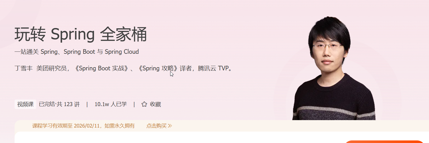 你是否想深入掌握现代 Java 开发的核心技术,构建高性能、可扩展的后端系统?《玩转 Spring 全家桶》课程将带你系统掌握 Spring 生态的核心技术栈,涵盖 Spring、Spring Boot 与 Spring Cloud,助你在企业级开发中游刃有余。课程从 IoC、AOP 讲到微服务治理,覆盖 Spring MVC、响应式编程、自动配置原理与云原生架构,帮助你构建完整的技术体系。通过“SpringBucks 咖啡馆”实战项目,你将掌握从单体架构到微服务拆分的全流程开发能力。无论你是希望进阶为后端高手,还是瞄准高薪 Java 开发岗位,这门课都将极大提升你的技术实力与项目经验,为你的职业发展注入强劲动力。