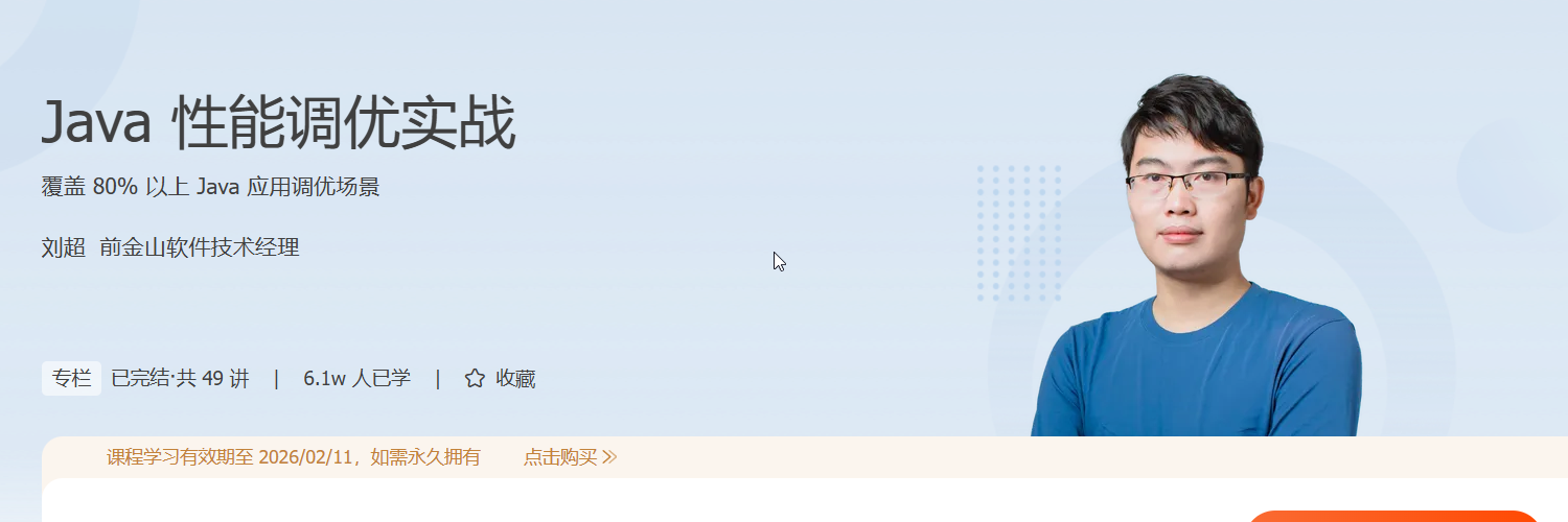在高并发、分布式系统盛行的今天,Java 性能调优已成为后端开发者的必备技能。本课程《Java 性能调优实战》紧扣实战场景,系统讲解从代码优化、JVM 调优到数据库与并发编程的全链路调优方法,助你在复杂系统中打造高性能、高稳定性的 Java 应用。