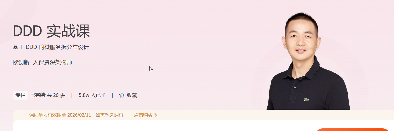 在前端与移动开发日益复杂的今天,如何高效对接后端微服务、实现灵活可扩展的系统架构,已成为开发者的核心竞争力。本课程《DDD 实战课》由人保资深架构师欧创新主讲,从领域驱动设计(DDD)出发,系统讲解如何构建清晰的业务模型,并与前端、微服务无缝衔接,打造高内聚、低耦合的工程实践。
