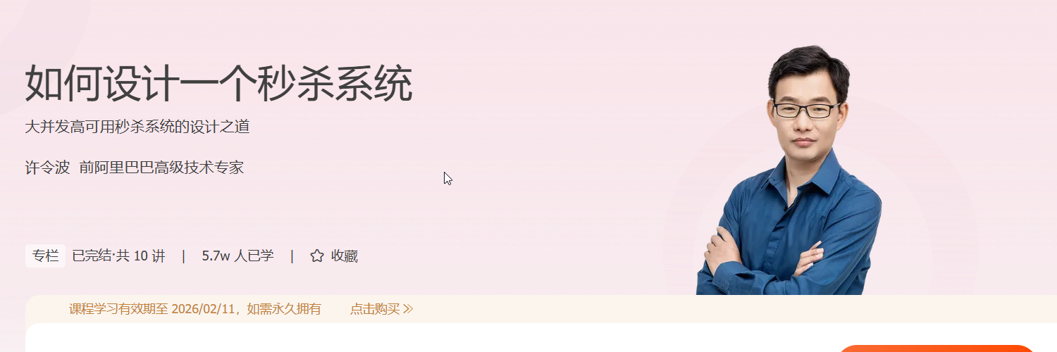在高并发场景中,秒杀系统是后端架构设计的“试金石”。本课程《如何设计一个秒杀系统》由前阿里高级技术专家许令波倾囊相授,聚焦高性能、一致性、高可用三大核心目标,带你掌握分布式系统设计的关键能力。