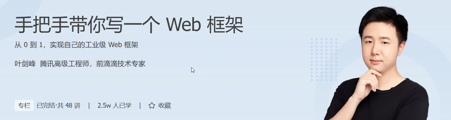 你是否想过,如何从零构建一个工业级的 Web 框架,深入理解其底层原理与核心设计?本课程《手把手带你写一个 Web 框架》将带你系统掌握 Go Web 框架的开发精髓。课程由腾讯高级工程师叶剑峰主讲,通过四个实战阶段,手把手教你实现框架底层原理、路由与中间件机制、模块化设计、配置与日志服务、数据库与缓存集成,并最终开发一个类知乎的前后端一体化问答系统。你将掌握框架开发六大核心概念,提升架构设计能力与业务效能。无论你是希望深入理解 Web 框架本质,还是寻求架构能力突破,本课程都将助你进阶为更具竞争力的前端 / 移动开发者。