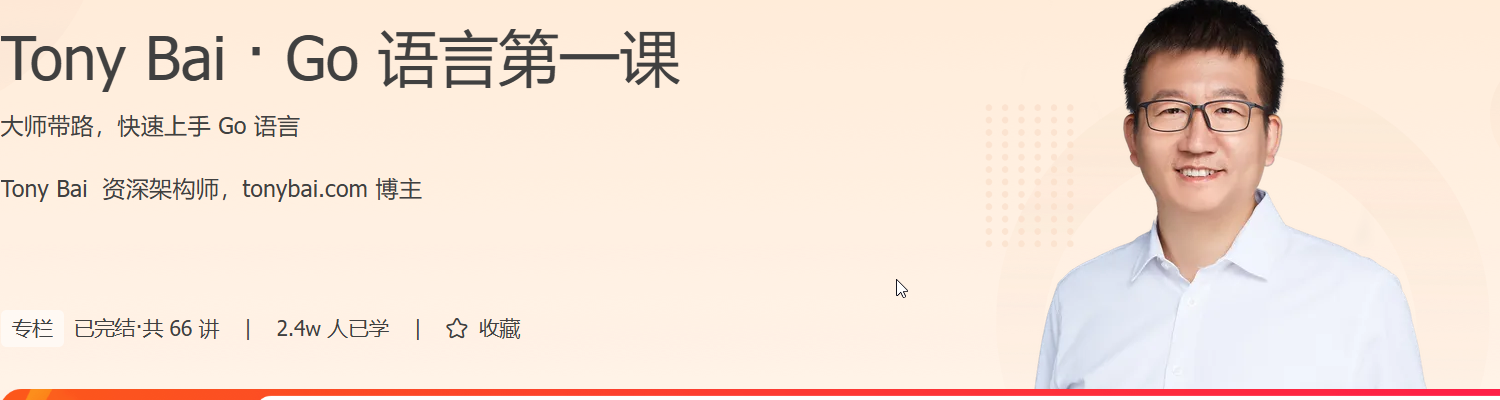 到最后,基础没打牢,项目上不去,这怎么行?因此,我们请来了资深架构师、技术博客 tonybai.com 的博主 Tony Bai 老师。他从 2011 年就开始关注 Go 语言了,对语言的理解非常深刻。