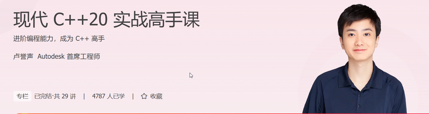 你是否渴望掌握一门能直击系统底层、构建高性能后端服务的语言?《现代 C++20 实战高手课》正是为你量身打造。课程聚焦 C++20 核心特性与标准库演进,助你在后端开发与系统架构领域实现能力跃升。
