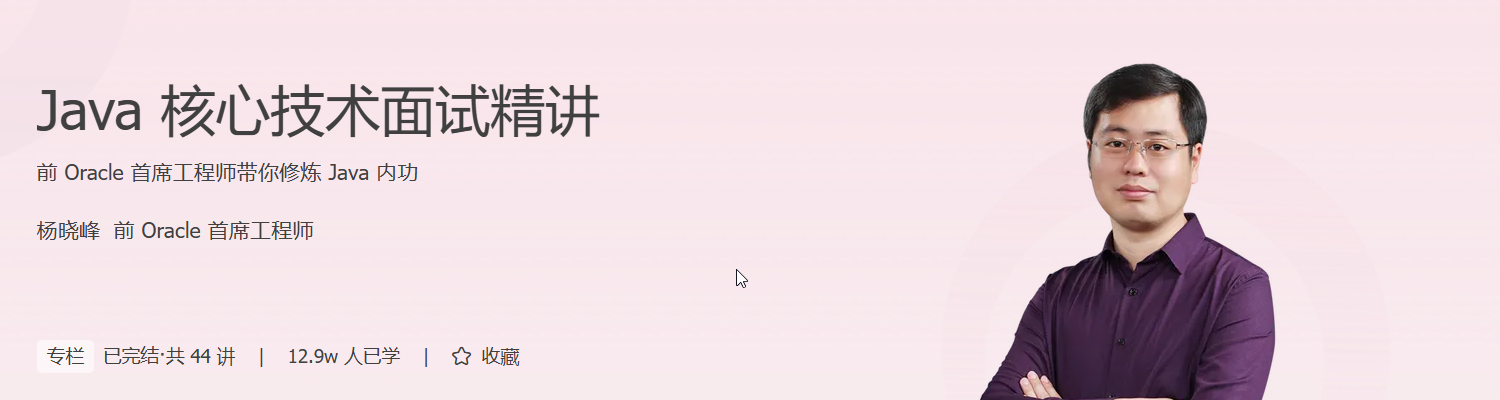 你是否想深入掌握 Java 核心技术,打造高并发、高性能的后端系统?本课程《Java 核心技术面试精讲》由前 Oracle 首席工程师杨晓峰主讲,专为后端开发者量身打造,系统梳理 Java 知识体系,覆盖 JVM 原理、并发编程、性能调优、Spring 框架、设计模式等核心内容。通过 36 道高频面试题深入解析,帮助你在真实业务场景中灵活运用,如线程池优化、锁机制调优、GC 策略选择、Spring Bean 生命周期管理等。学完你将具备大厂面试竞争力,胜任中高级 Java 岗位,实现技术深度与职业发展的双重突破。
