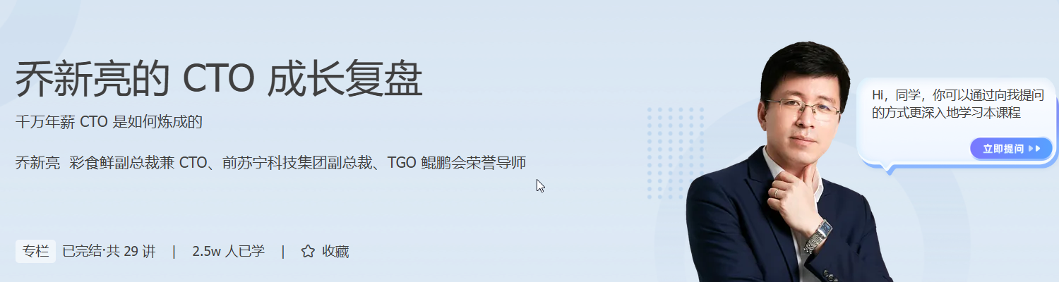 在后端与架构领域,技术深度与全局视野缺一不可。本课程《乔新亮的 CTO 成长复盘》不仅是一条从程序员到技术管理者的跃迁之路,更是一套系统构建技术影响力与架构思维的实战指南。课程涵盖架构设计、高可用、高性能、扩展性等核心技术能力,深入剖析真实业务场景下的决策逻辑与落地策略。你将掌握“产品思维”“全局思维”“风险管理”等关键认知,学会在复杂系统中做出理性取舍,提升技术判断力与领导力。通过真实案例复盘,如中台架构演进、高并发系统优化、云原生架构转型等,助你从执行者成长为决策者。无论你是希望突破技术瓶颈的后端工程师,还是寻求向架构师或技术管理者转型的从业者,这门课都将为你打开职业跃升的新可能。