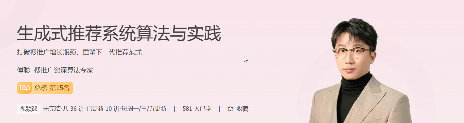 生成式推荐系统算法与实践这门课,就是要解决我们当下最切身、最紧迫的问题: