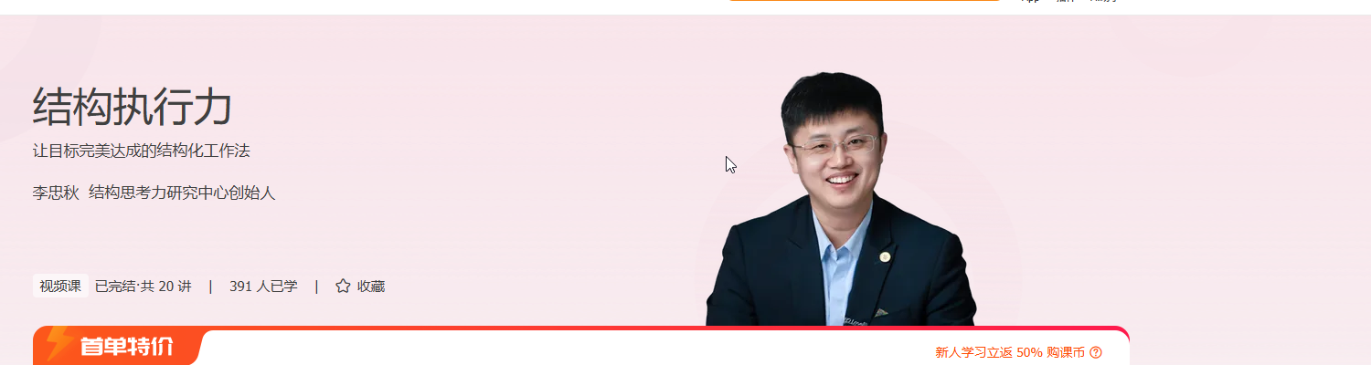 为了解决这些问题,极客时间推出了这门精选合作课程,来自「结构思考力研究中心」。李忠秋老师将通过明确目标有方向、盘点资源有保障、拆解目标有工具、制定计划有路径、付诸行动有结果等五大部分,带着你对工作方法进行结构化分解及优化,并通过可视化、标准化、工具化的教学形式,带你提高工作效率,完成目标。本课程将帮助你搭建起高效执行之桥,带你实现从目标到结果的跨越之旅。