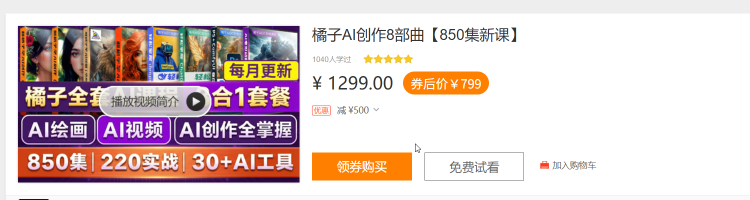 课时2视频《橘子AI创作8部曲》850集&220案例,AI绘画&AI视频教程!41:49可试看
