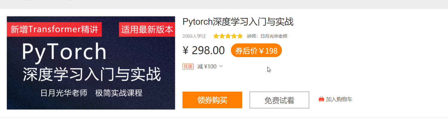 课程配套书籍《PyTorch深度学习简明实战》已由清华大学出版社出版。
