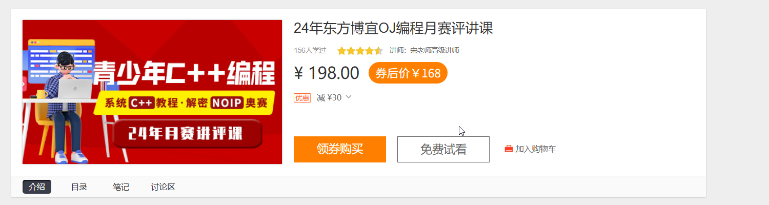 东方博宜OJ信息学奥赛编程月赛品讲课,含24年1~12月ABC三组月赛评奖。课程由资深编程老师主讲,老师真人出镜,互动性和现场感强。