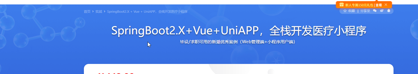 本课程以业务驱动技术栈,打造业务相对完整的掌上医疗小程序,解决大家没有好的毕设项目或者求职项目的困境。本课程案例采用前后端分离架构,业务功能完善(既有WEB管理端,也有移动用户端),界面美观,无需艰涩的技术也能做出亮眼的作品。