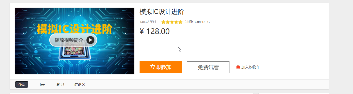 课时1视频模拟IC设计进阶课程内容简介24:53可试看