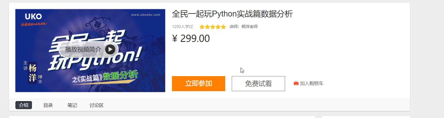 本课程是杨洋博士《全民一起玩Python》系列课程之一,共72集精品视频,专题讲解数据分析与数据科学的核心基础,涵盖Numpy/Pandas、主流绘图库、统计分析库与机器学习库的技巧方法。同时在官网ukoedu.com上提供有完整的交互式知识点图谱、220道习题(部分附有视频讲解)和13万字官方学习笔记。