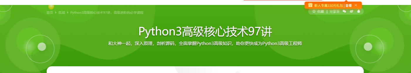 这门课程是初中级Python开发人员向高级进阶的必学课程!许多Pythoner喜欢追求新的框架,却不知道,语言本身的进阶优先于框架,大公司更注重语言本身的功底。学透了Python高级基础知识再学习其它框架,才会事半功倍!